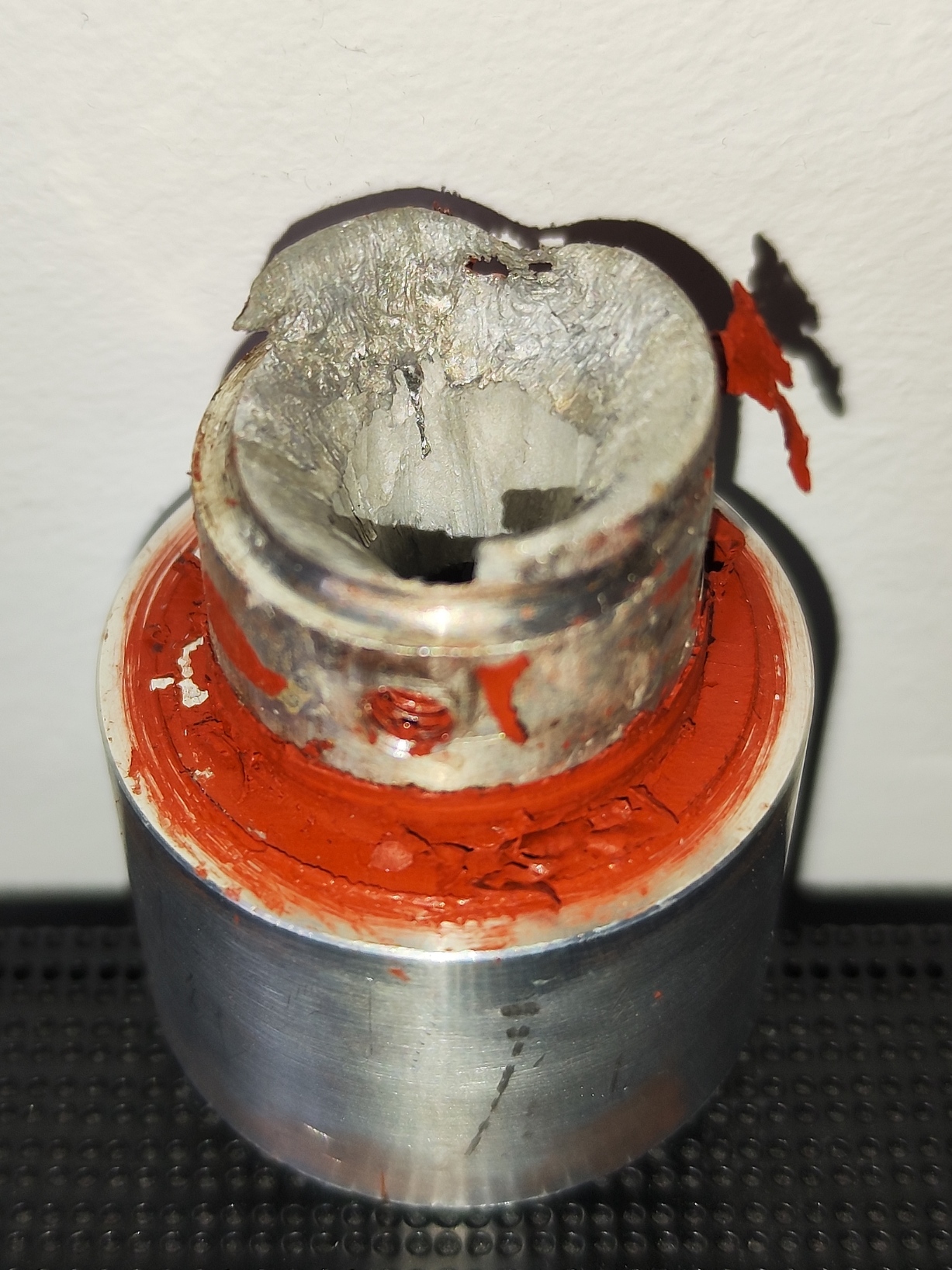 Third and last failed attempt, the propellant grain split in half due to a harsh extraction. Last time I used a cardboard mold.