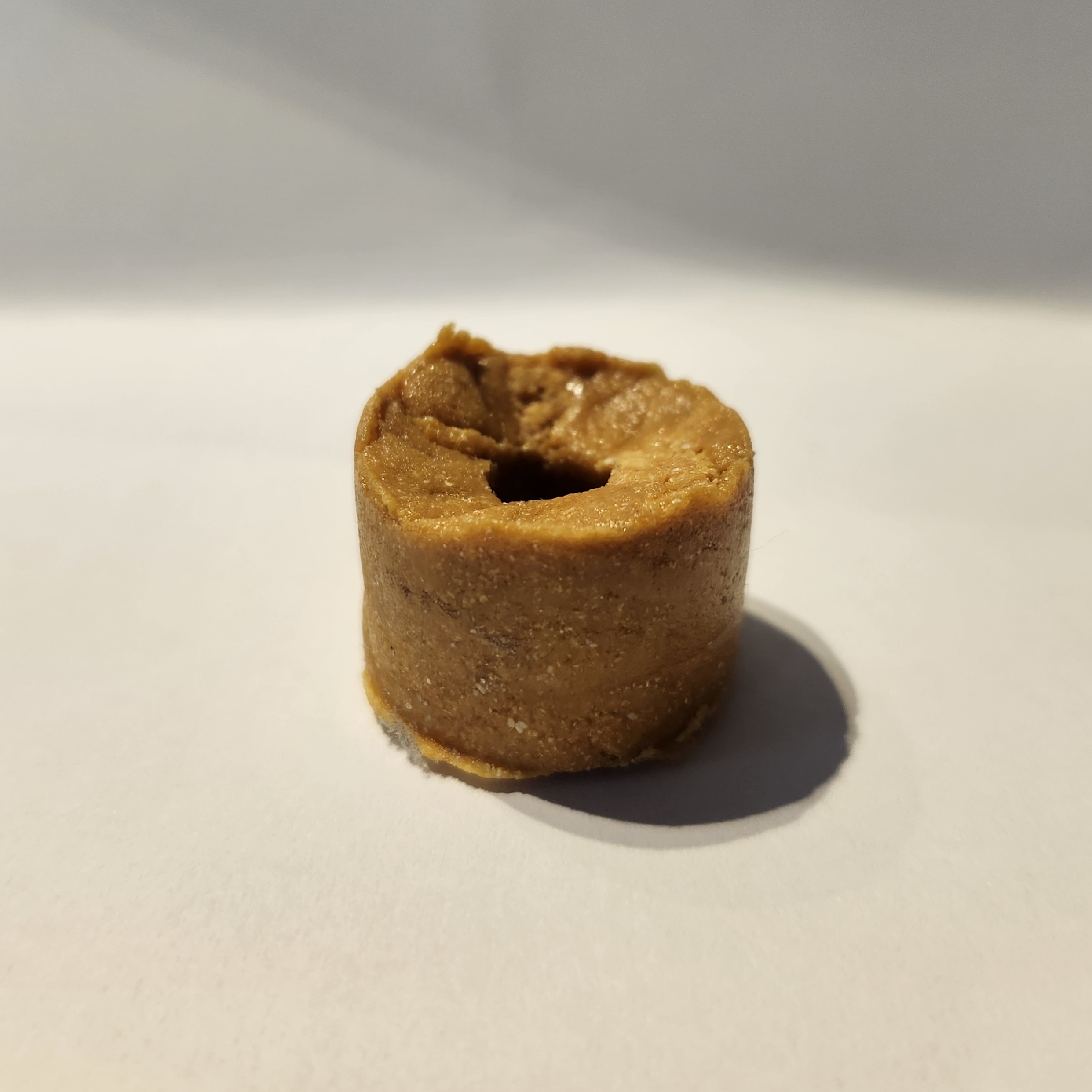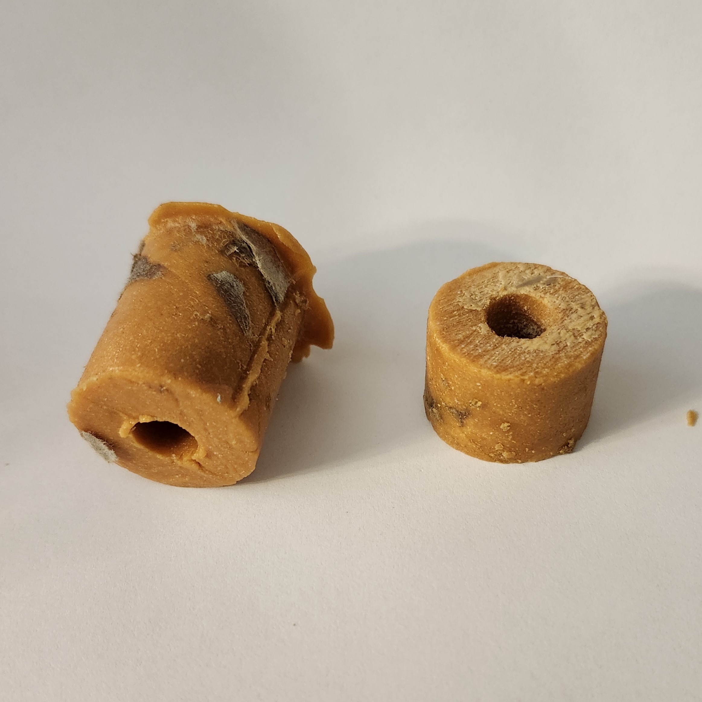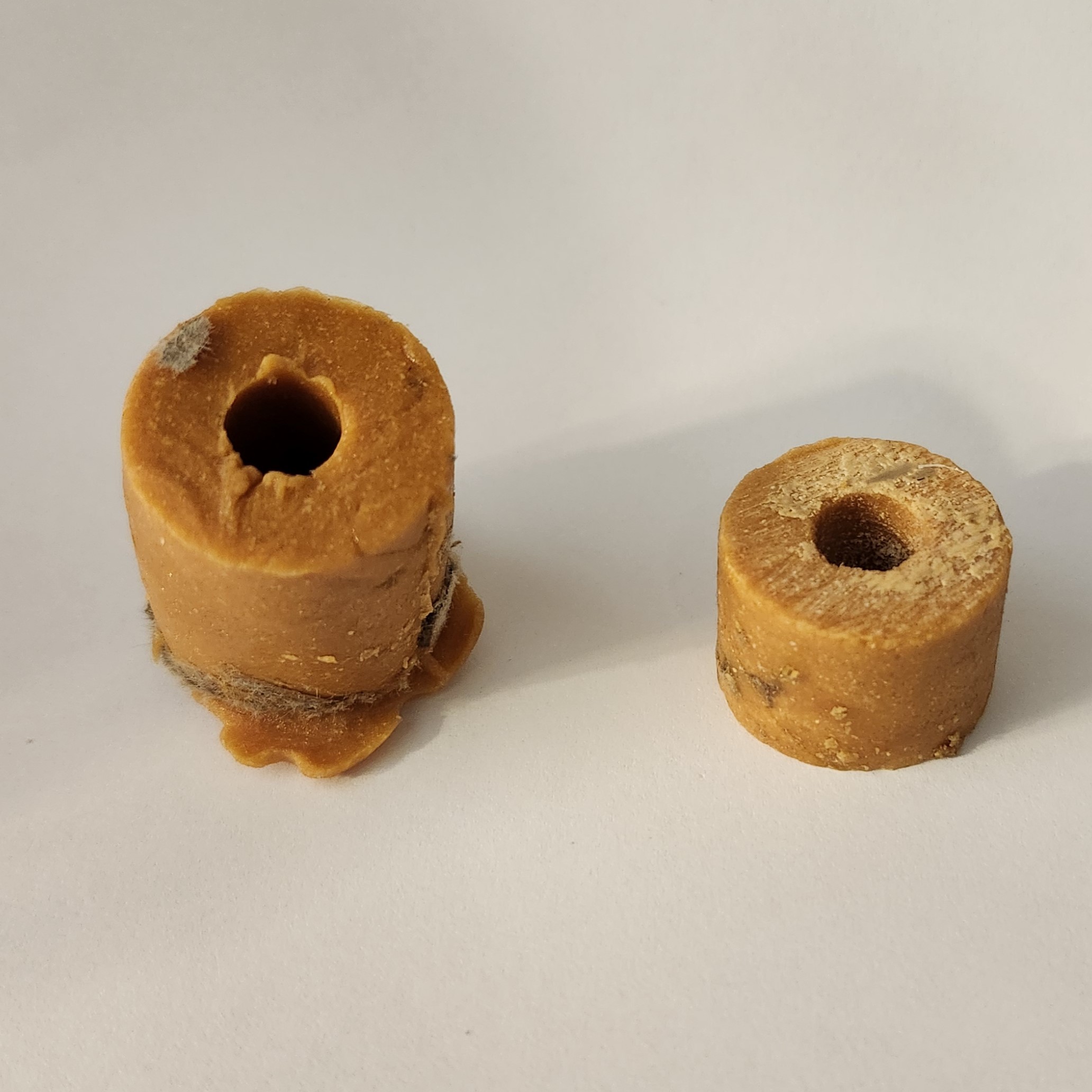 Second attempt, this time I used a stick to push the fuel, still not enough compression, visible voids. That was the first time that I noticed that cardboard isn't a great mold.